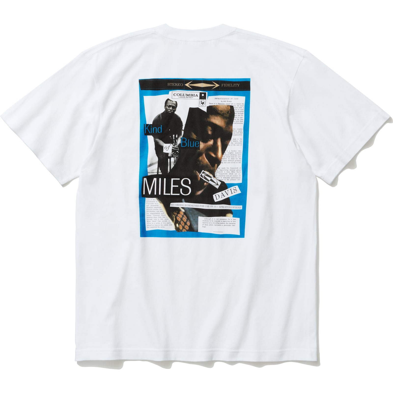 着れるジャズレコード! コラクソー初のディスクガイド『コラージュ・オブ・ブルー』に掲載したジャズレコードのコラージュが展示会に際してTシャツ化!S/M/L/XLの4サイズ展開で1サイズ1デザイン。印象的なバックプリント、そして左胸には書籍で解説する曲名が各型別フォントで刻まれてた小粋な仕様。Lサイズはマイルス・デイビスのSo what。
